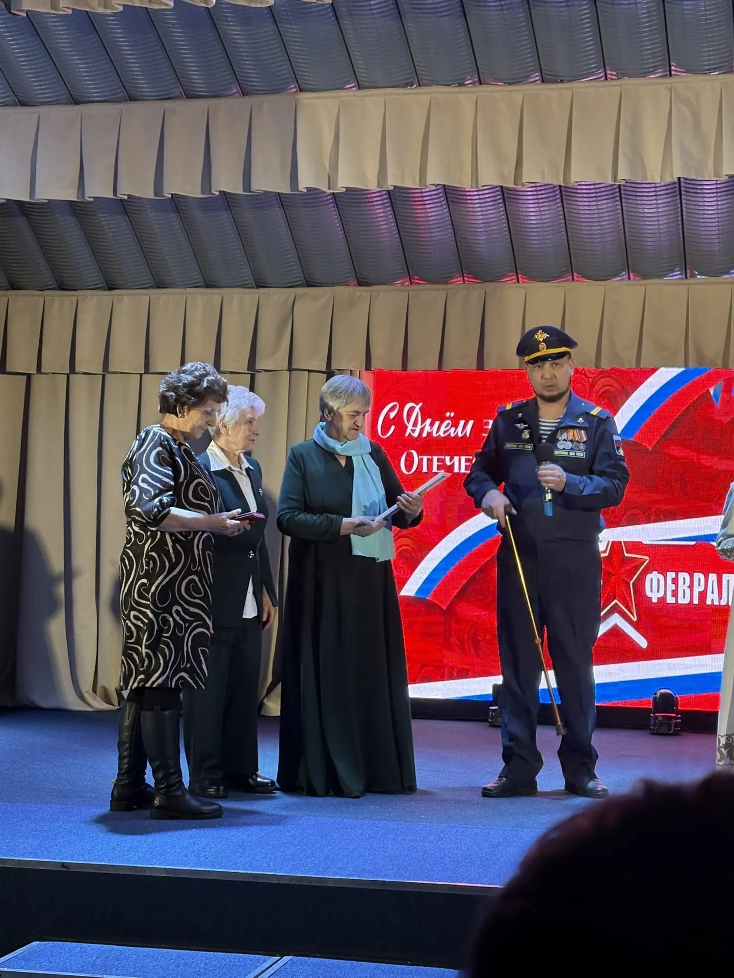 В центре досуга поселка Ленинский состоялся праздничный концерт, посвященный Дню защитника Отечества. Торжественное мероприятие началось с исполнения гимнов Российской Федерации и Республики Саха (Якутия), задавших высокий патриотический тон всему вечеру. С приветственным словом к присутствующим обратился — участник специальной военной операции, гвардии сержант, глава городского поселения «Поселок Ленинский» Анатолий Александрович Потеруха. Он, не только поздравил всех с праздником, но и вручил благодарственные письма и награды волонтерам, которые ежедневно оказывают неоценимую поддержку участникам СВО. Этот момент стал живым свидетельством того, что подвиг солдат и труд тех, кто помогает в тылу, неразрывно связаны. Патриотическая атмосфера концерта объединила поколения. В этот день со сцены зрителей поздравляли лучшие творческие коллективы поселка и города Алдана: · вокальный коллектив «Аккорд»; · вокальная группа «Гравитация»; · вокальная студия «Поющая душа» Солисты Ирина Петунина и Галина Золарева.