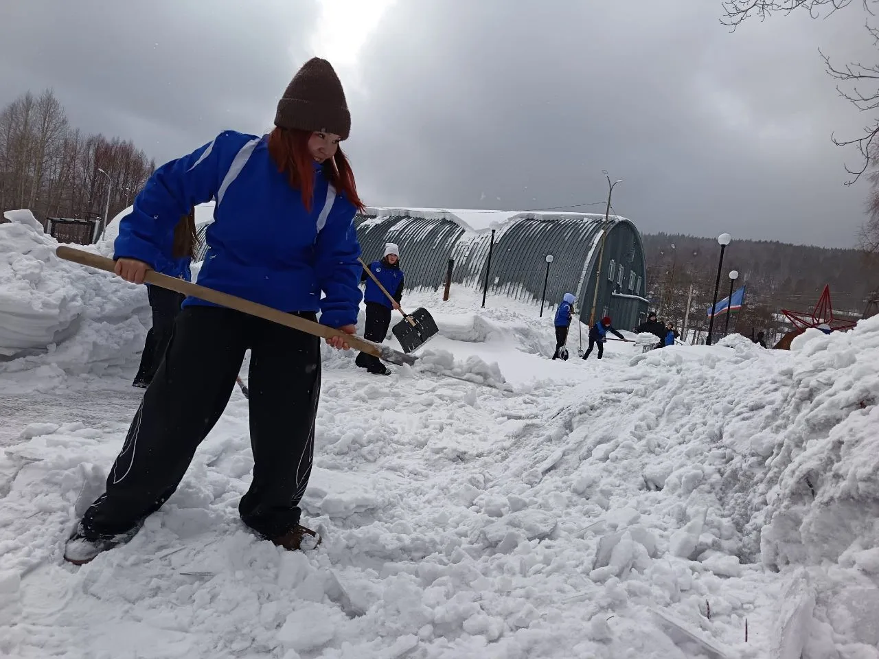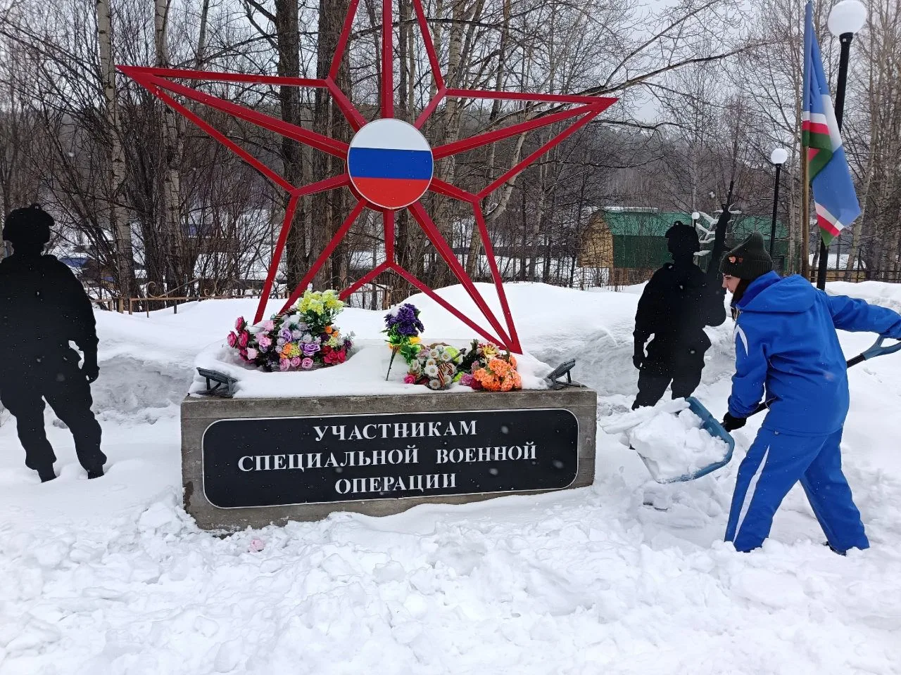 Отряд «Волонтеры Победы» провел акцию по уборке снега на территории памятника героям Великой Отечественной войны и мемориала участникам СВО