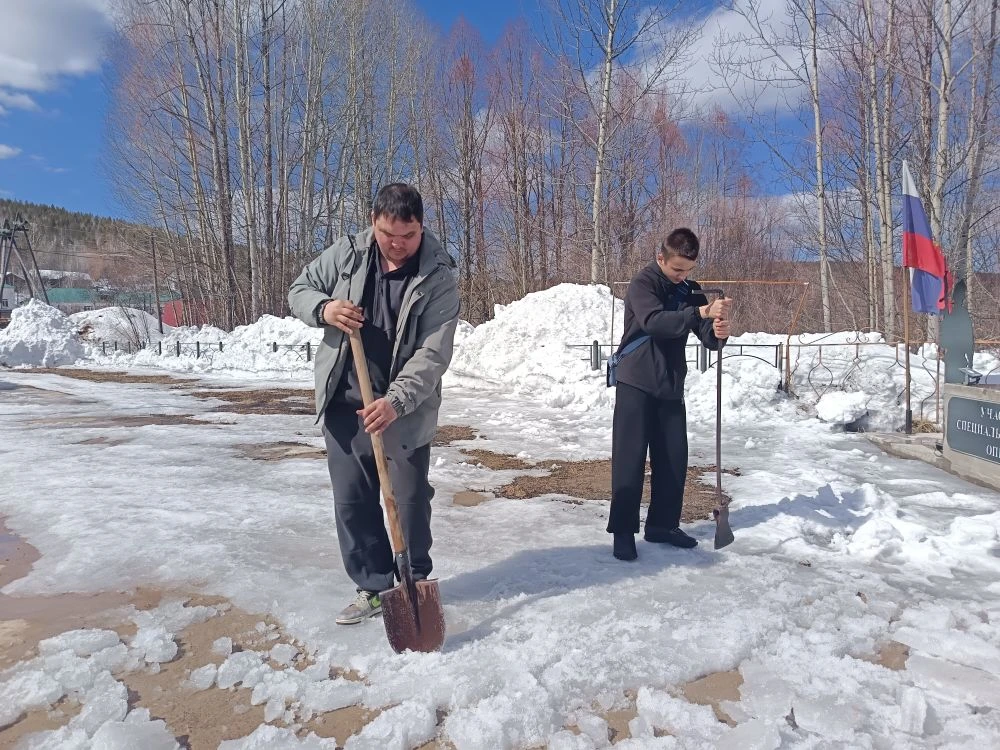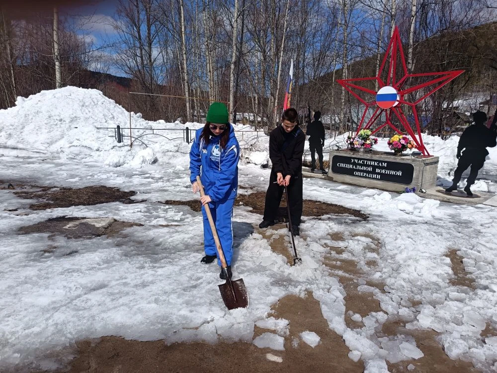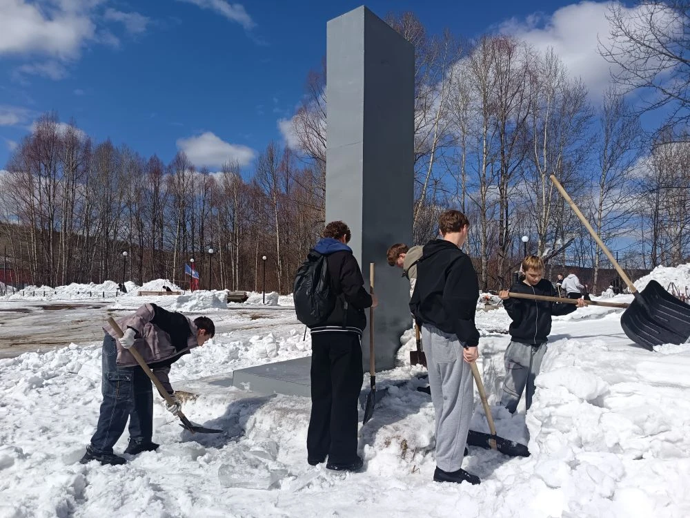 Ребята провели субботник у памятников героям Великой Отечественной войны и участникам специальной военной операции. Вооружившись лопатами и инвентарем, они очистили мемориалы от снега, чтобы в канун 9 Мая они выглядели достойно.
